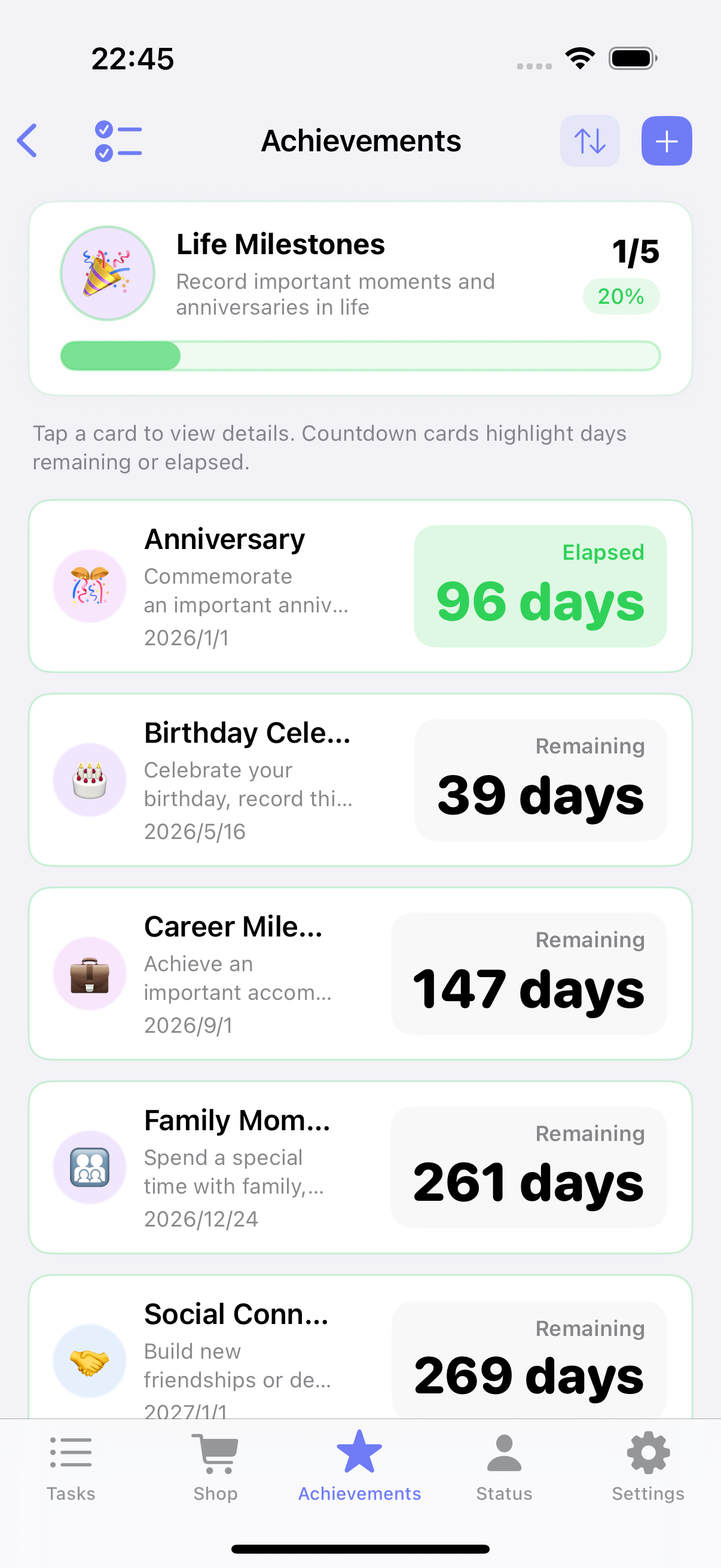 ulives 1.7.0: achievement checklists, countdown dates, faster focus, and more control